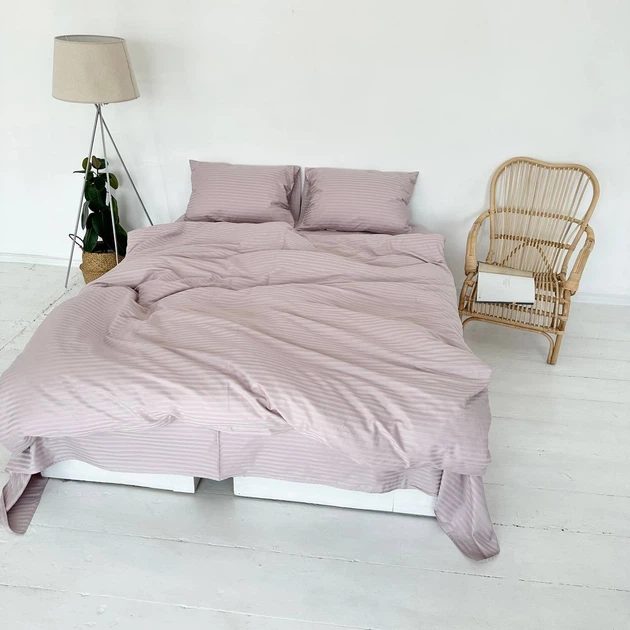 Комплект постільної білизни Страйп Сатин Premium бузковий півтороспальний 150х210 см