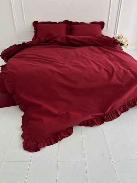 Постільна білизна Бордо з рюшами, сімейний розмір 145х215см х2шт, бязь наволочки 70х70, бавовна