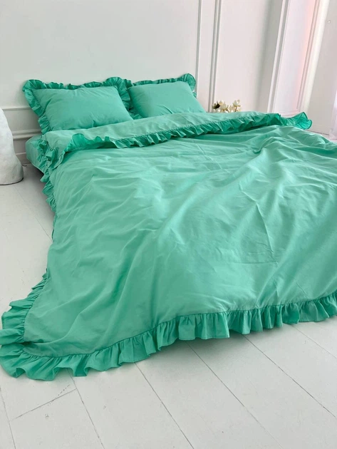 Постільна білизна Мятний з рюшами, сімейний розмір 145х215см х2шт, бязь наволочки 50х70, бавовна