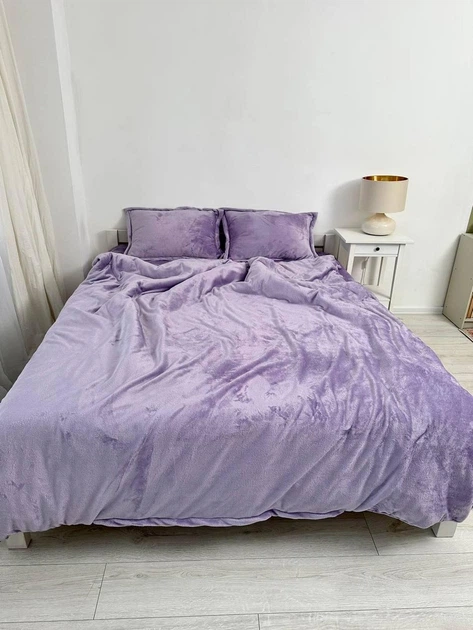 Постільна білизна з гумкою плюшева однотонна Бузкова, євро розмір 200х220 см, наволочки 70х70