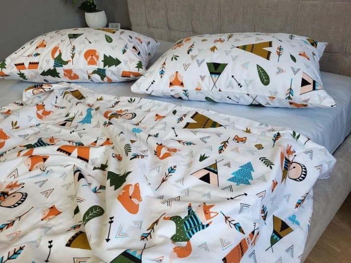 Постільна білизна Хитрий лис/блакитний, фланель(байка) Полуторний розмір, наволочки 70/70