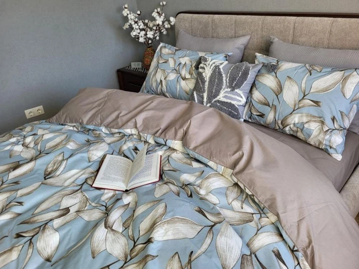 Постільна білизна Сірий + голубий ранфорс Полуторний розмір, наволочки 50/70
