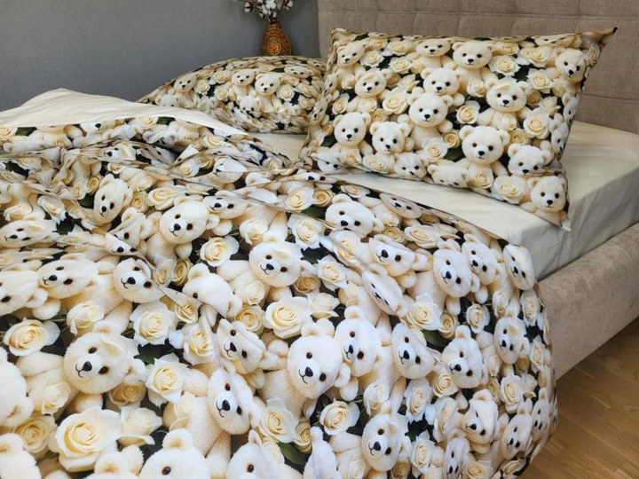 Постільна білизна з резинкою Подарунок, ранфорс Сімейний розмір, наволочки 50/70