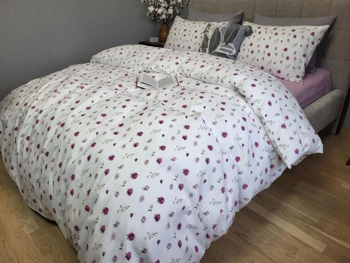 Постільна білизна з резинкою Сеул, ранфорс гофра (жатка) Евро розмір, наволочки 50/70