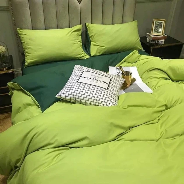 Комплект постільної білизни MERISET 120091306 Євро на резинці Ранфорс Салатовий, Зелений