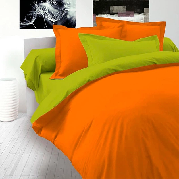 Комплект постільної білизни MERISET 120091402 Євро на резинці Ранфорс Помаранчевий, Салатовий