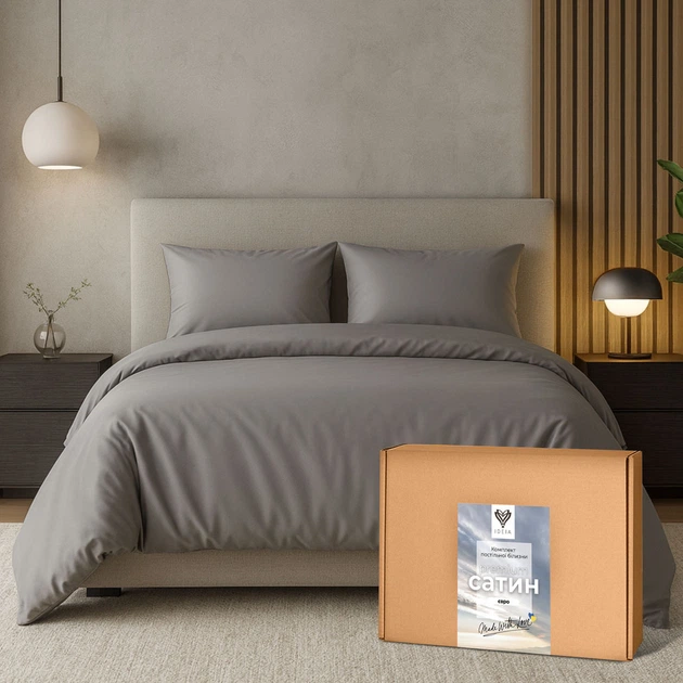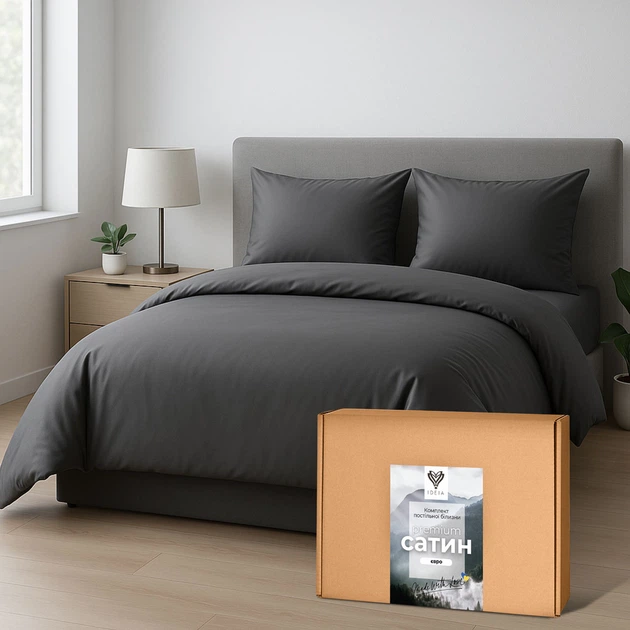 Комплект постільної білизни IDEIA євро 200х220 сатин бавовна преміум т/сірий 5146568