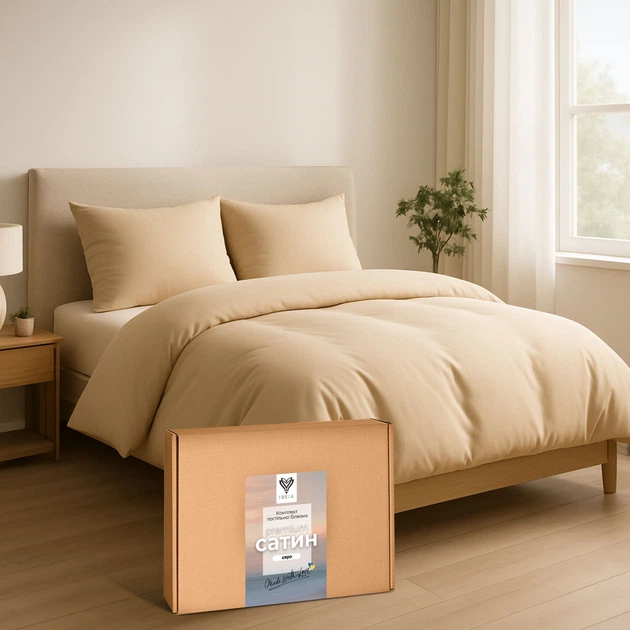 Комплект постільної білизни IDEIA євро 200х220 сатин бавовна преміум беж 5140783
