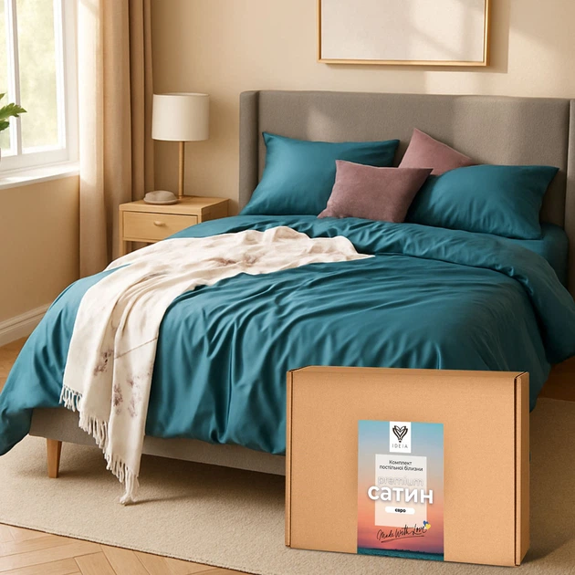 Комплект постільної білизни IDEIA євро 200х220 сатин бавовна преміум м'ята 5143397