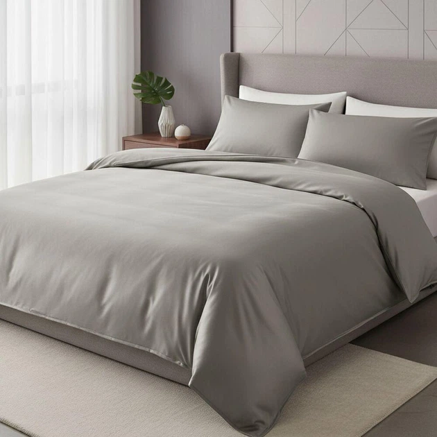 Комплект постільної білизни полуторний 3 од. сатин Сірий