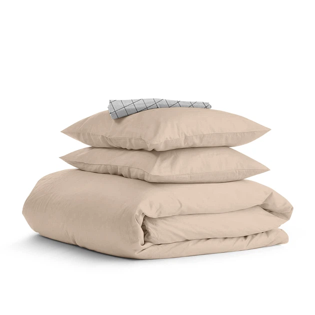 Комплект постільної білизни MERISET 120091325 Сімейний Ранфорс Сірий, Молочний