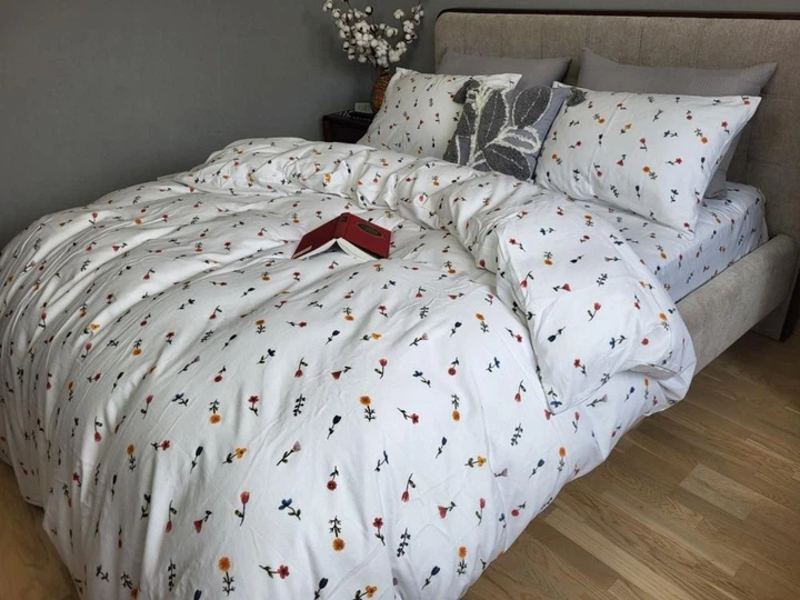Постільна білизна Квітковий, сатин GOFRE PREMIUM Полуторний розмір, наволочки 70/70