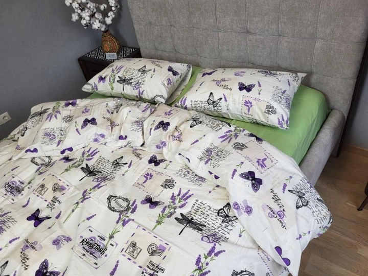 Постільна білизна з гумкою тепла Листівка + салатовий, двоспальний розмір 180х215 см, турецька фланель преміум (байка), наво