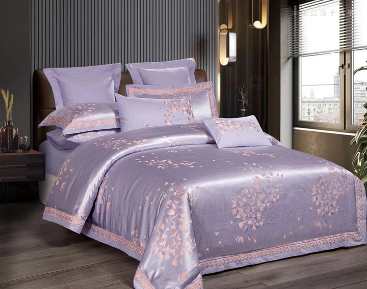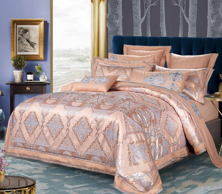 Двоспальний комплект постільної білизни Євро Максі Жаккард Сатин 4 наволочки (F21158) TM Krispol