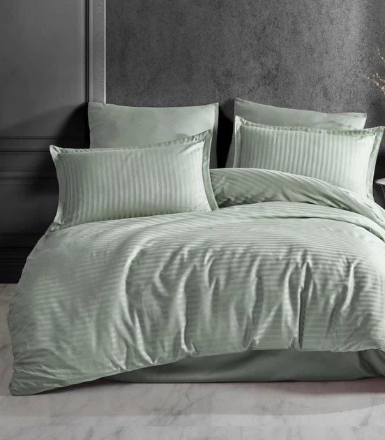 Постільна білизна євро Comfort Home Stripe Satin широка смужка Green зелений