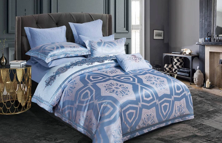 Двоспальний комплект постільної білизни євро 200*220 жаккард сатин (21157)