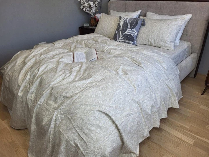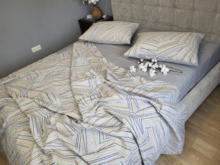 Постільна білизна з гумкою Політ шампань євро розмір 200х220 см, жатка, турецький ранфорс гофре , наволочки 50х70, 100 бавов