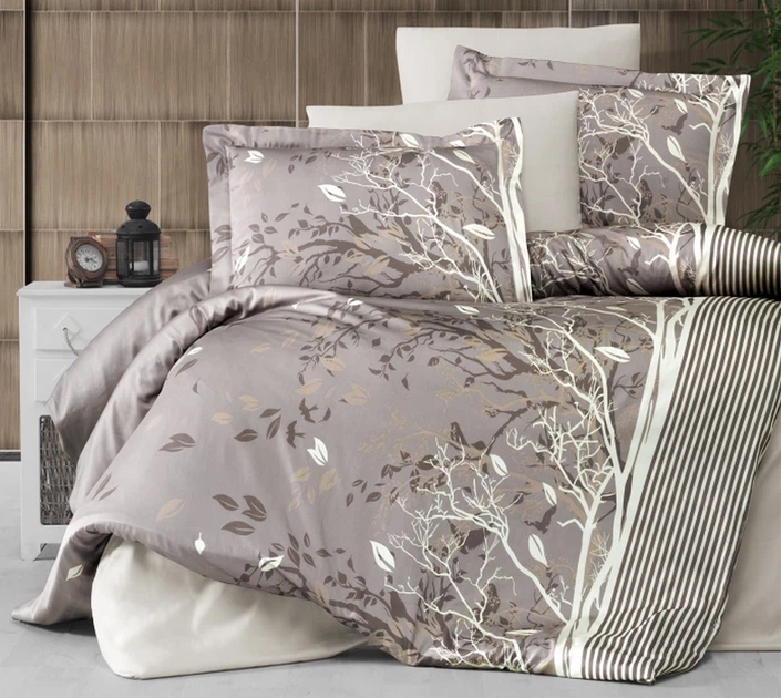 Турецька постільна білизна First Choice Cotton Satin Living brown євро