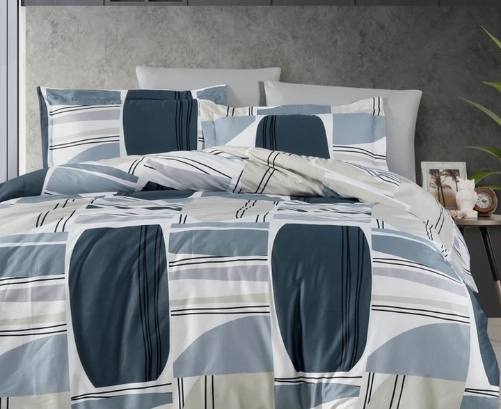 Турецька постільна білизна First Choice Cotton Satin Evan Indigo євро