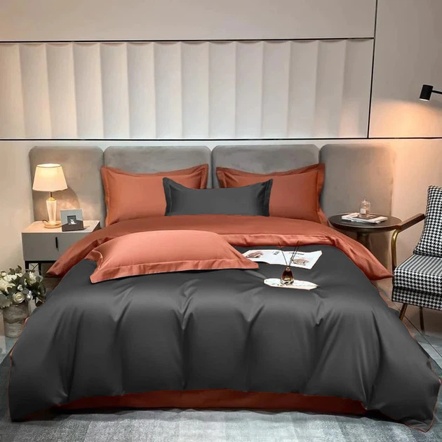 Постільна білизна MERISET ДУЕТ FRAPPE ANTHRACITE Premium Сатин однотонний Двоспальний комплект 200х220