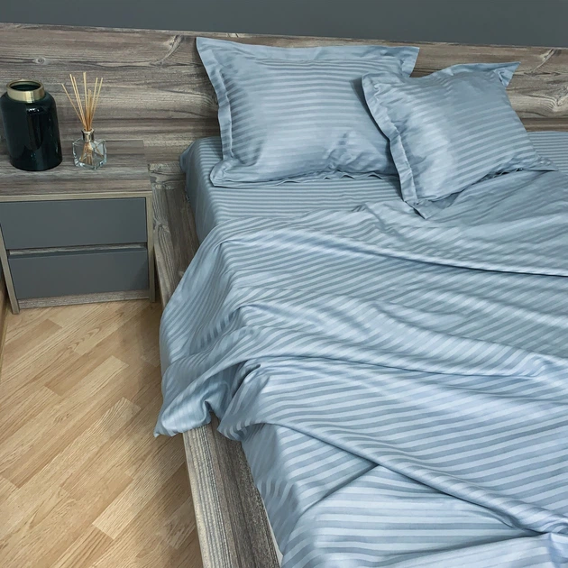 Однотонна постільна білизна Преміум MLS Сатин Страйп комплект Євро 200*220/50*70 голубий