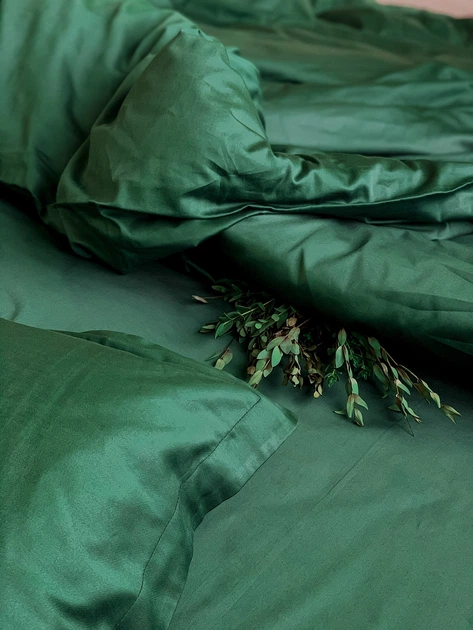 Євро Смарагдовий комплект постільної білизни Belinens/ преміумний сатин однотонний/ підковдра 200х220 см/ 100 бавовна