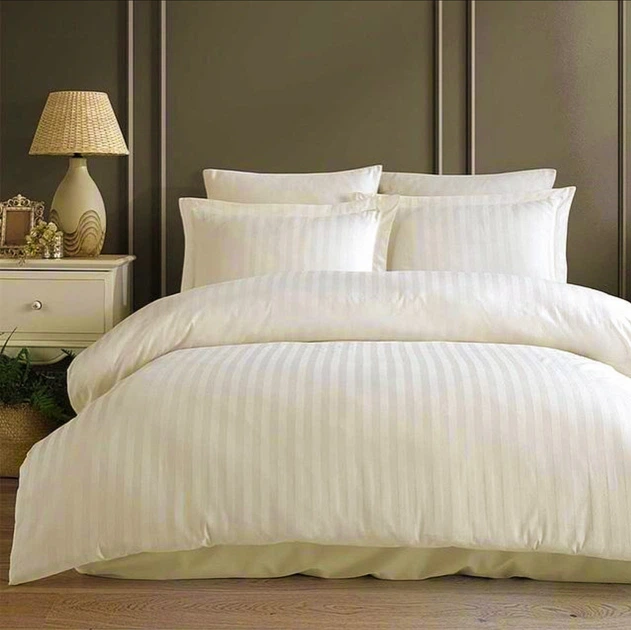 Євро Молочний комплект постільної білизни Belinens/ преміумний сатин-страйп/ підковдра 200х220 см/ 100 бавовна