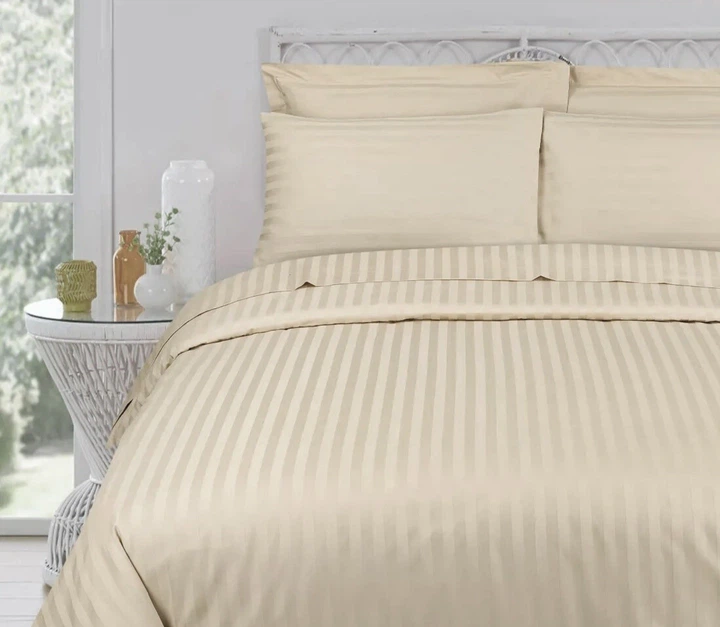 Євро Бежевий комплект постільної білизни Belinens/ преміумний сатин-страйп/ підковдра 200х220 см/ 100 бавовна