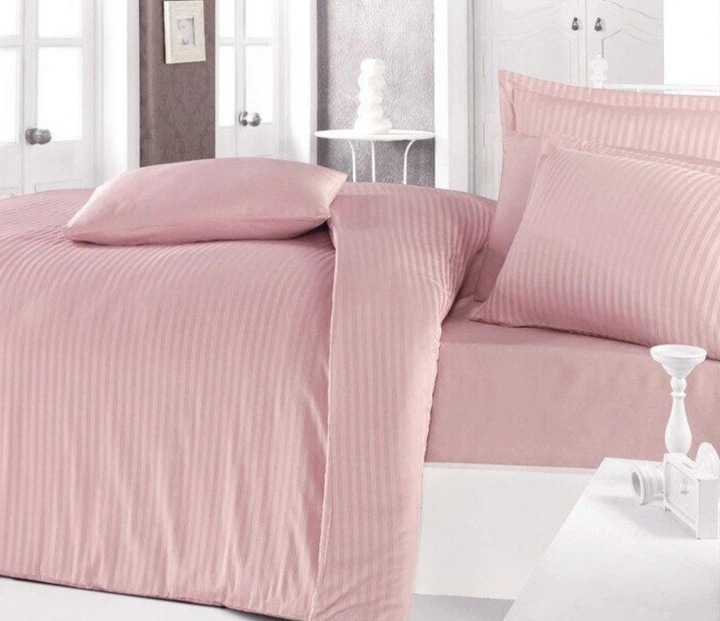 Євро Пудровий комплект постільної білизни Belinens/ преміумний сатин-страйп/ підковдра 200х220 см/ 100 бавовна