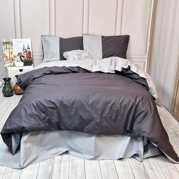 Постільна білизна MERISET Антрацит/Сірий Ранфорс PREMIERE Двоколірний Євро комплект 220х240 см