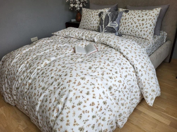 Постільна білизна з гумкою Кардамон двоспальний розмір 180х215 см, жатка, турецький ранфорс гофре , наволочки 70х70, 100 ба