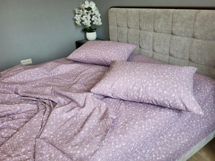 Постільна білизна з гумкою Лаванда двоспальний розмір 180х215 см, жатка, турецький ранфорс гофре , наволочки 70х70, 100 бав