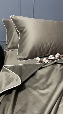 Элитная сатиновая постель комплект Полуторний MLS Сатин с кантом 160*220/50*70 какао + кант молочний