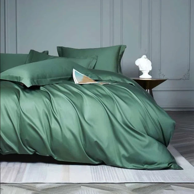 Комплект постільної білизни MERISET 120090561 Двоспальний Сатин однотон Зелений