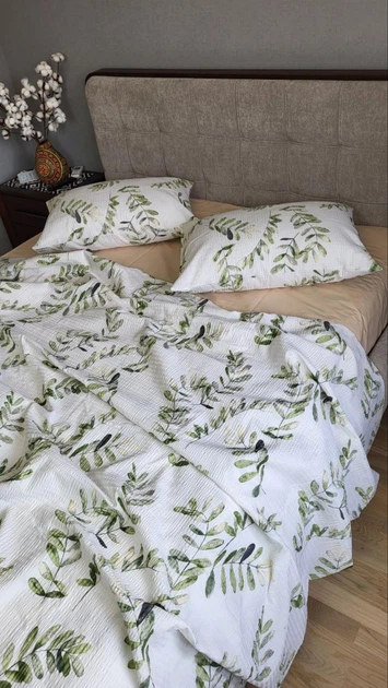 Постільна білизна з резинкою Оливкове гілля DUO, ранфорс гофра (жатка) Полуторний розмір, наволочки 70/70