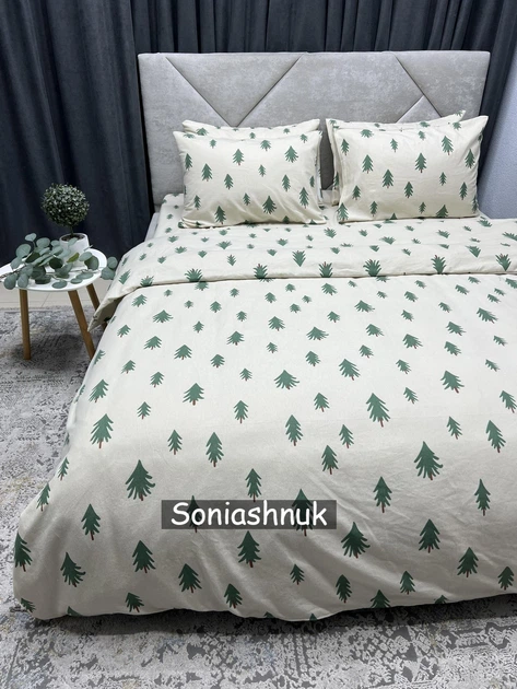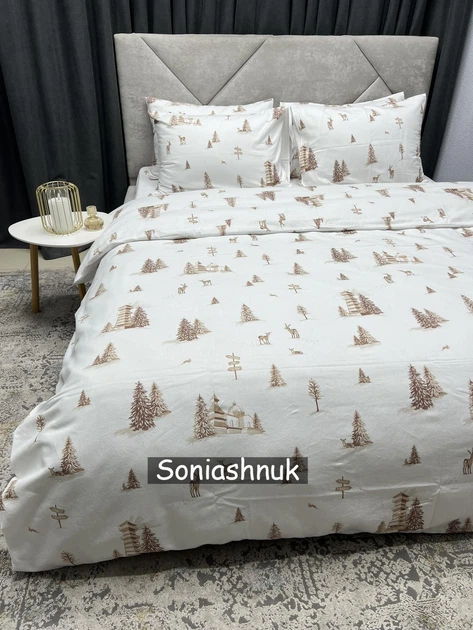 Постільна білизна Новорічний 901FL Сімейний 150 x 220 дві підковдри Фланель Бежева 50 х 70