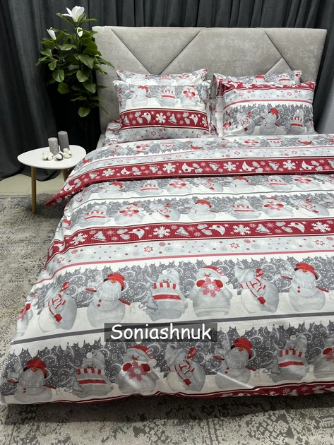 Постільна білизна Новорічний 886FL Сімейний 150 x 220 дві підковдри Фланель Червона 70 х 70