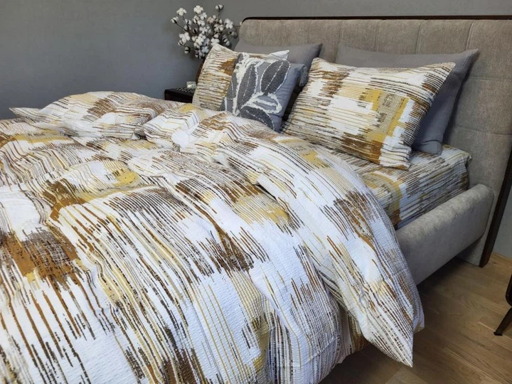 Постільна білизна з резинкою Іріс, ранфорс гофра (жатка) Полуторний розмір, наволочки 50/70