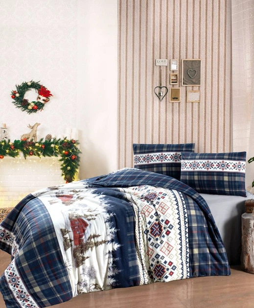 Комплект постільної білизни Ell Home фланель євро 50/70 Сніжинки MIX