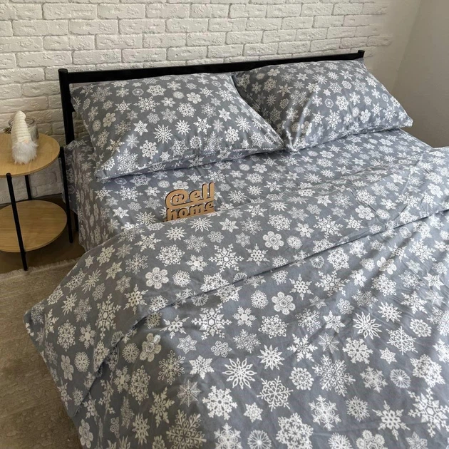 Комплект постільної білизни Ell Home фланель євро 70/70 Сніжинки на сірому фоні