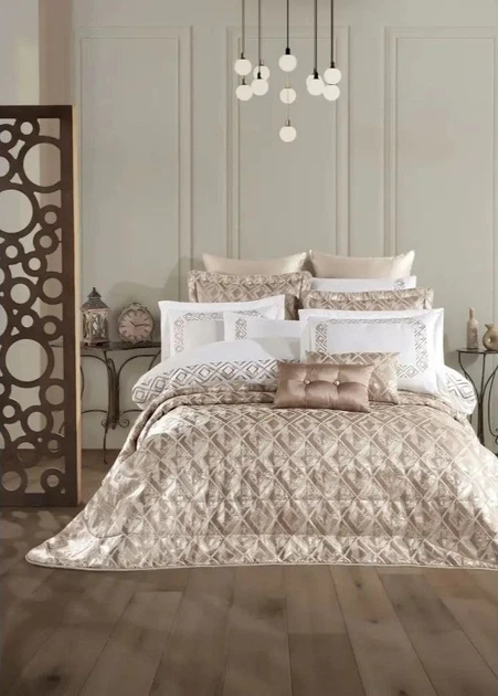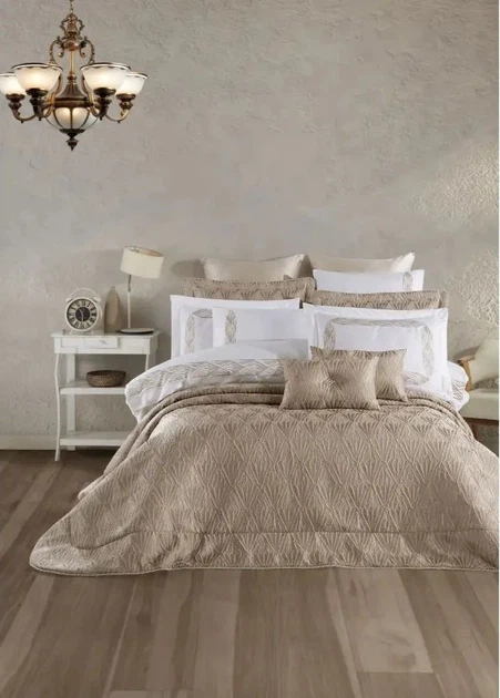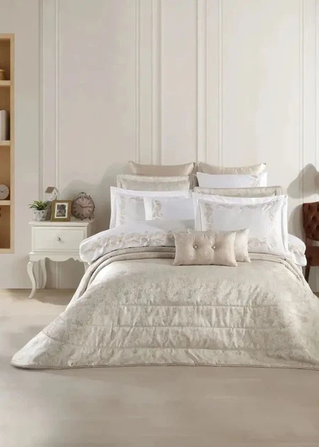 Набір постільної білизни з вишивкою та жакардовим покривалом Dantela Vita - Angelina bej бежевий євро