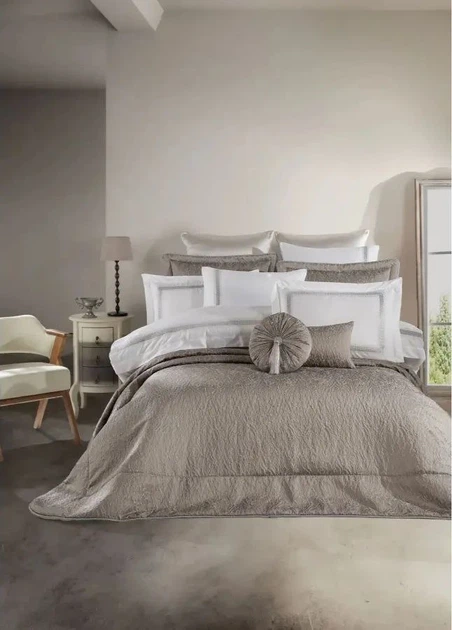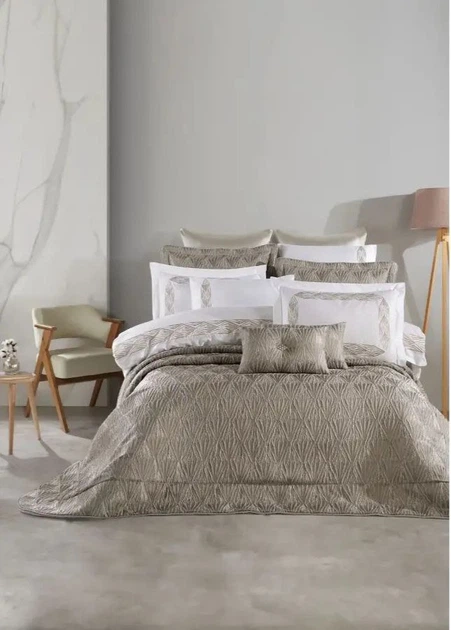 Набір постільної білизни з вишивкою та жакардовим покривалом Dantela Vita - Alina gri-bej євро
