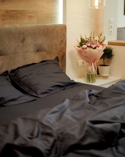 Двоспальний Графітовий комплект постільної білизни Belinens/ преміумний сатин-страйп/ підковдра 180х220 см/ 100 бавовна