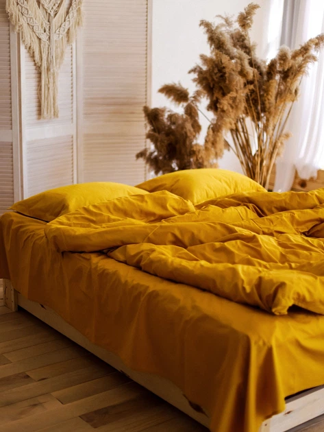 Двоспальний Гірчичний комплект постільної білизни Belinens/ преміумний сатин однотонний/ підковдра 180х220 см/ 100 бавовна