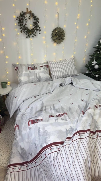 Постільна білизна з гумкою Зимова хатинка, євро розмір 200х220 см, турецький ранфорс, наволочки 70х70, 100 бавовна