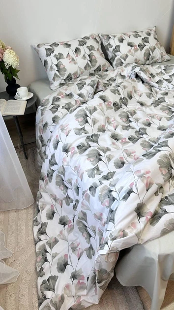 Постільна білизна з гумкою Фльор сірий, євро розмір 200х220 см, турецький ранфорс, наволочки 50х70, 100 бавовна