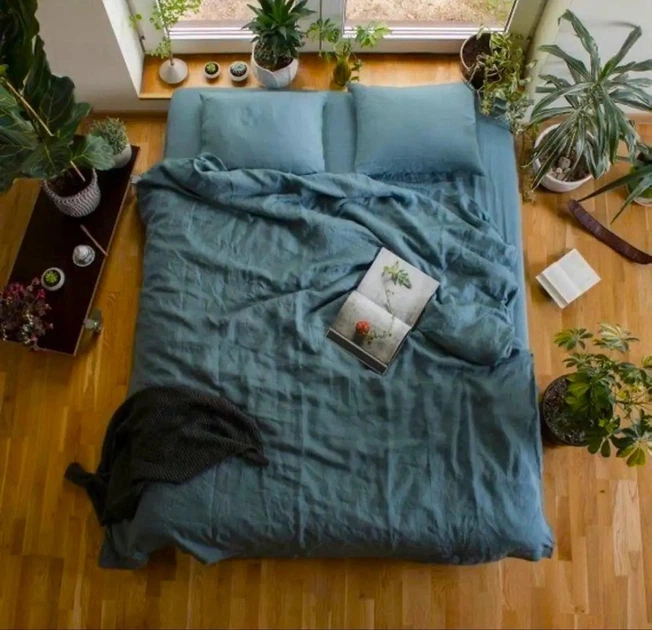 Двоспальний М’ятний комплект постільної білизни Belinens/ преміумний сатин-страйп/ підковдра 180х220 см/ 100 бавовна