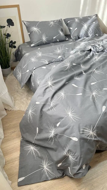 Постільна білизна з гумкою Кульбаба сірий, євро розмір 200х220 см, турецький ранфорс, наволочки 70х70, 100 бавовна