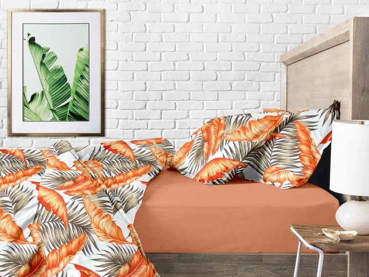 Напівтораспальний комплект на гумці COSAS ORANGE PALMS CS1 Ранфорс 160х220 см Помаранчевий