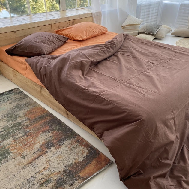 Постільна білизна Теракот+шоколад ранфорс Евро розмір, наволочки 50/70